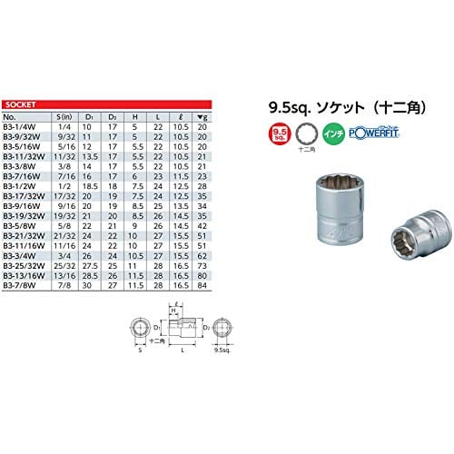 京都機械工具(KTC) ソケット 12角 B3-1/4W S:1/4インチ×全長:22×差込角:9.5mm