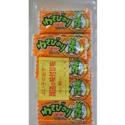 原材料:魚肉すり身、小麦粉、イカ粉、しょうゆ、みりん、砂糖、乾のり、香辛料、調味料(アミノ酸等)、カラメル色素、ソルビット、香料、甘味料(甘草、ステビア)、(原材料の一部に大豆を含む)