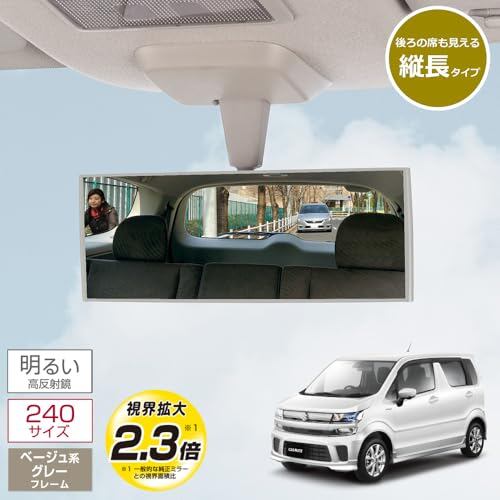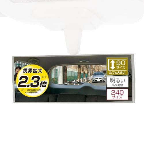 【製品サイズ】幅249mm×高さ96mm 【鏡のサイズ】幅239mm×高さ89mm 【適した車両タイプ】天井の高い軽自動車・コンパクトミニバン・コンパクトSUV 【オススメ車種】タンク/ルーミー/デイズ/eKワゴン/eKカスタム