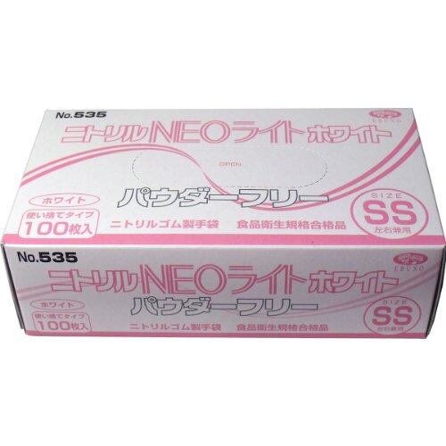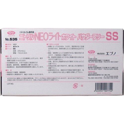 エブノ No.535 ニトリル手袋 ネオライト パウダーフリー ホワイト SSサイズ 100枚入