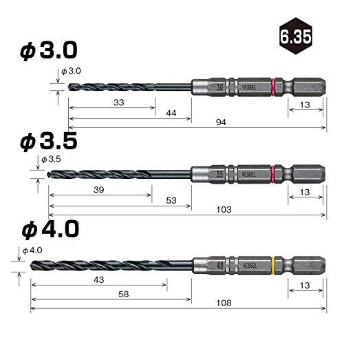 ベッセル(VESSEL) クッションドリル <鉄工用> ドリルビットセット 3本組 (Φ3.0、3.5、4.0mm) AMD3S-2