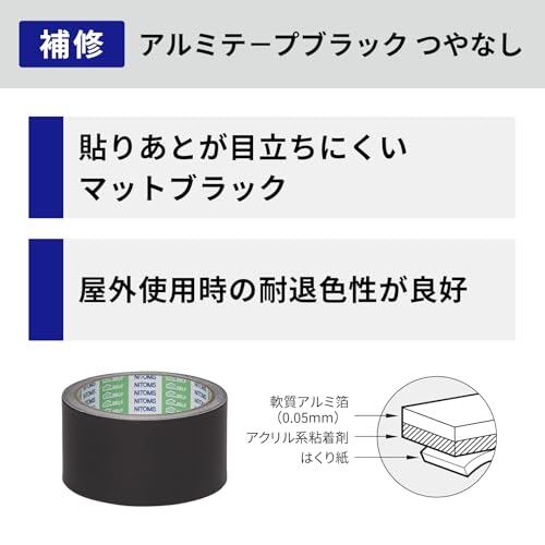 ニトムズ プロセルフ アルミテープブラックつやなし 簡単防水 補修 キズ隠し 金属 屋外 幅50mm×長さ10m×厚さ0.1mm 1巻入 黒 J3270