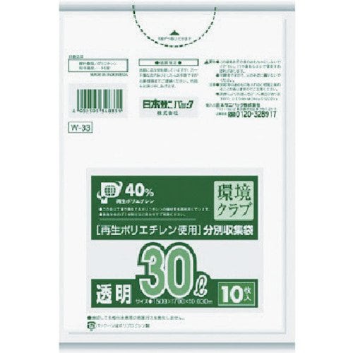 日本サニパック 環境クラブ 透明ゴミ袋 30L 10枚入 厚さ0.03mm