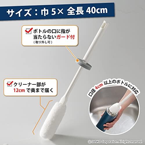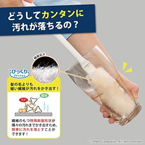 Sanko【日本製】サンコー ブラシ ステンレスボトル洗い 水筒 冷水筒 タンブラー ボトル 哺乳瓶 水だけでも汚れが落とせる特殊繊維 びっくりフレッシュ ホワイト BH-20
