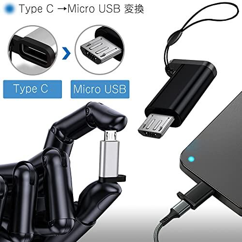 マイクロUSB-タイプC 変換アダプター 3個セットUSB Type C to Micro USB 変換 コネクタ データ転送 ストラップ付 紛失防止 小型 簡単に持ち運 Xperia/Galaxy/Nexus/HUAWEIなどMicro USB 設備対応 (ブラック 2個シルバー1個)