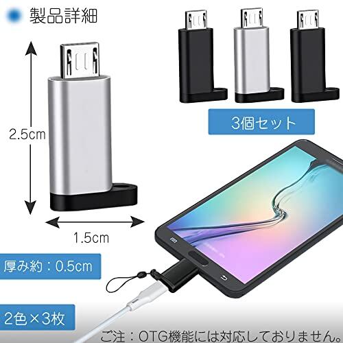セット内容:マイクロUSB変換アダプター 3個セット カラー:ブラック 2個シルバー1個
