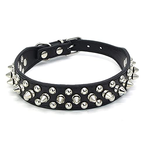 犬の首輪 スタッズ ワイルド トゲトゲ 5穴 調節 可能 小型犬 中型犬 大型犬 猫 かわいい おしゃれ (ブラック, XS)