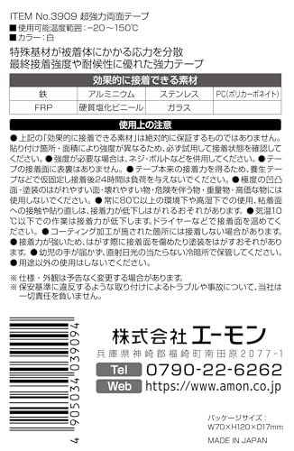 エーモン(amon) 超強力両面テープ (バンパー・スポイラーなどに) 車外用 白 幅10mm×長さ2m×厚さ1.14mm 自動車用 3909