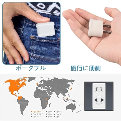 【使用簡単】変換プラグを現地のコンセントに挿すだけで、簡単に使用できます。外出先でも、さまざまな国や地域で電化製品を安全に充電することができます。海外旅行や出張の必需品として、大変便利です。