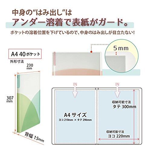 プラス クリアファイル A4縦 40ポケット Pasty 98-415 マスカットグリーン