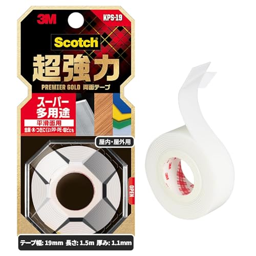 3M スコッチ 超強力両面テープ プレミアゴールド スーパー多用途 平滑面用 白 19mm×1.5m KPS-19