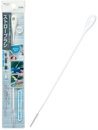 まめいた ブラシ ホワイト 約24.7×1.5×0.6cm ストロー ブラシ クリーナー ロングタイプ 極細ナイロン 自由に曲がる 日本製 KB-821