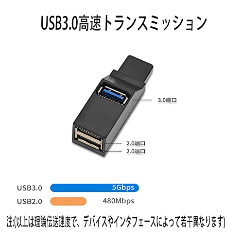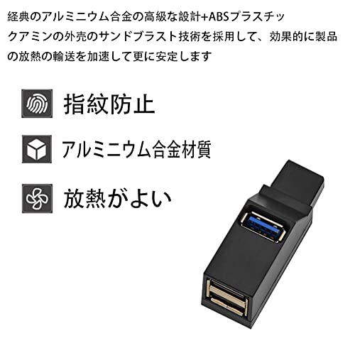 ALLVD USBハブ 3ポート USB3.0+USB2.0コンボハブ 超小型 バスパワー usbハブ USBポート拡張 高速 軽量 コンパクト 携帯便利 1個入り (ブラック)