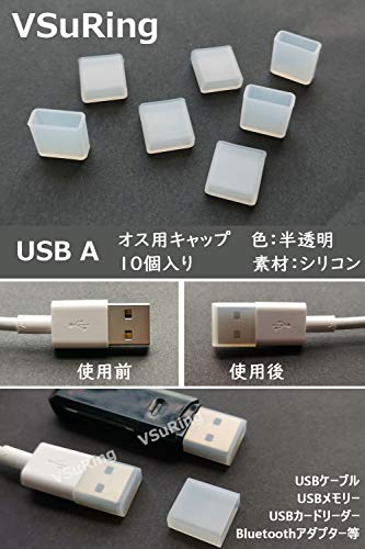 VSuRing USB コネクタカバー キャップ シリコン製 オス用 Android iPhone ケーブル 対応 USB2.0 /3.0 /3.1 USB-Aタイプ 保護 防塵 湿気・ホコリ侵入防止 USBグッズ (USB A + Micro B, 半透明)