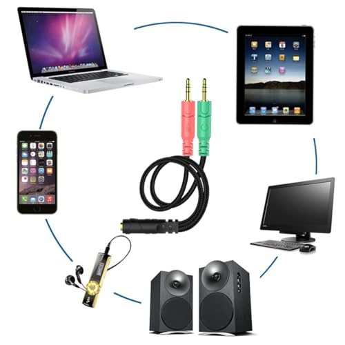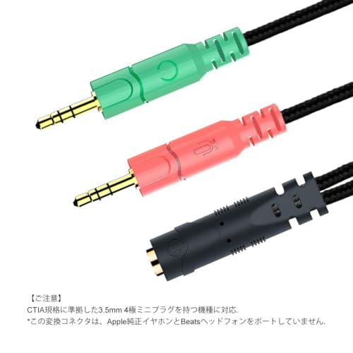 【接続が簡単】: ENVELの3.5mmヘッドセットスプリッターにより、ステレオヘッドセットをPCオーディオポートとマイクポートに同時に接続できます。 1つはデスクトップ/PCのオーディオ用グリーンプラグ、もう1つはマイク用のピンク。CTIA規格。