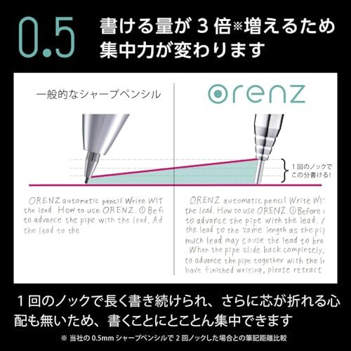 【特長2】ノック1回の筆記量が、一般的なシャープペンシルの3倍です