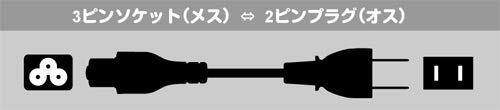 コネクター形状:ACアダプター側:3ピンソケット(メス)、ACコンセント側:2ピンプラグ(オス)