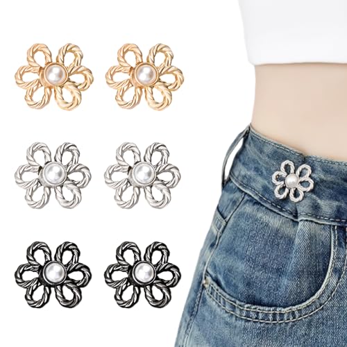 [KDSSYFT] 調整ボタン ウエスト 6個入り 花の形 ウエストバックル リベット付き ジーンズ バックル 縫い目ない 取り外し可能ボタン 調節可能 スカート (3色)