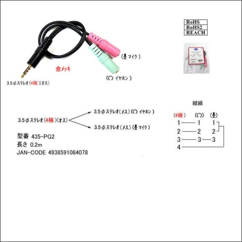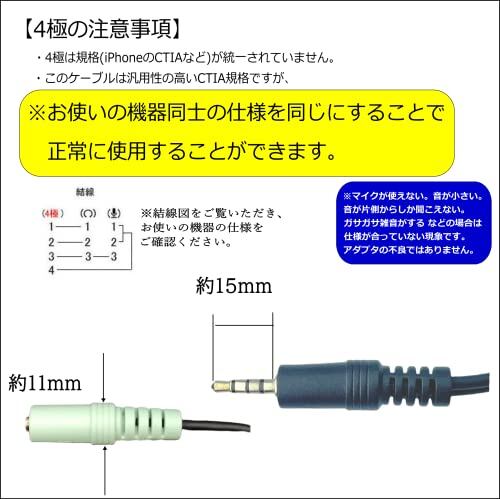 3.5mm4極 ヘッドホン・マイク分岐ケーブル:3.5mm4極(オス) - 3.5mmヘッドホン(メス)&3.5mmマイク(メス)【COMON製】