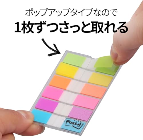 ポストイット フィルム 付箋 見出し 6色 44×10mm 20枚×6パッド 683NEH 、イエロー、オレンジ、ローズ、パープル、スカイブルー インデックスシール