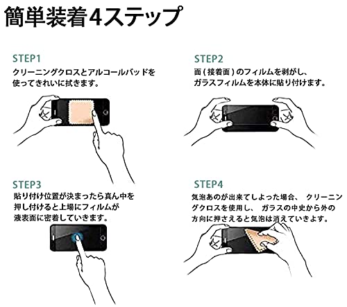 【簡単貼り付け】ガラスを液晶に置くと自然に吸着、 強化ガラスに気泡が出来にくく誰でも簡単に貼り付けられます。気泡防止加工が施されているので、気泡が入りにくい。万が一、気泡が入ってしまったとしても時間が経てば自然に消えます。シリコンによる吸着性で気泡が入りにくい、フィルム貼りが苦手という方も手軽に お貼りできます。飛び散り防止加工がされており破損した場合ほとんど飛び散らずとても安全です。