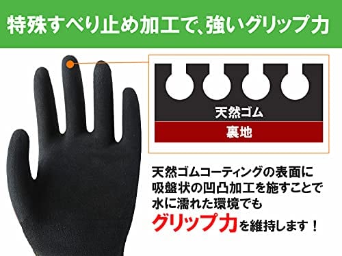 独自コーティング技術で、天然ゴム&タッチパネル対応の作業用手袋。