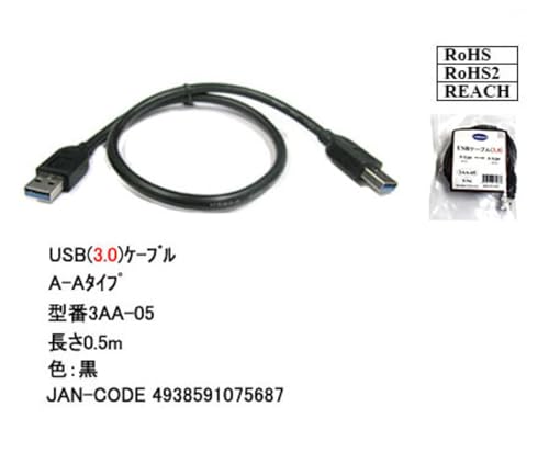 カモン 【(COMON)製】USB3.0ケーブル(Aタイプ:オス←→Aタイプ:オス)/0.5m【3AA-05】