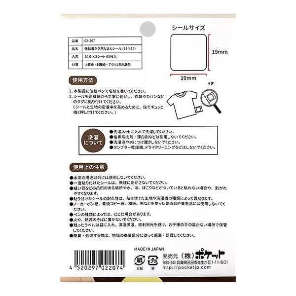 ファイブスター 日本製強粘着タグ用なまえシール 布用名前シール ノンアイロン 貼るだけ簡単 水に強い洗濯対応(19x19mm 1パック)