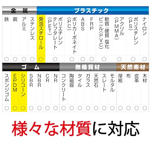 耐熱温度(℃):-60~+120、主成分:変成シリコーン樹脂系