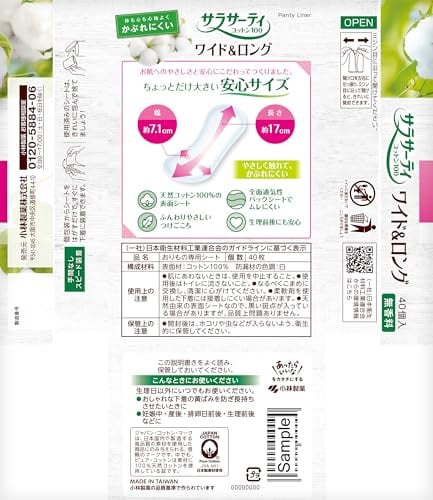 サラサーティ コットン100 ワイド&ロング ちょっとだけ大きい安心サイズ 無香料 おりものシート 40個 小林製薬