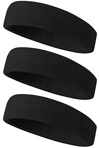 ヘアバンド メンズ スポーツ 汗止め エココットン素材・スポンジのような吸収性・いきいきとした通気性 ヘッドバンドス ポーツ用 洗顔用 伸縮性あり 軽柔速乾 ランニング ダンス ヨガ ジョギング 男女兼用 3本セット (#02.ブラック+ブラック+ブラック)