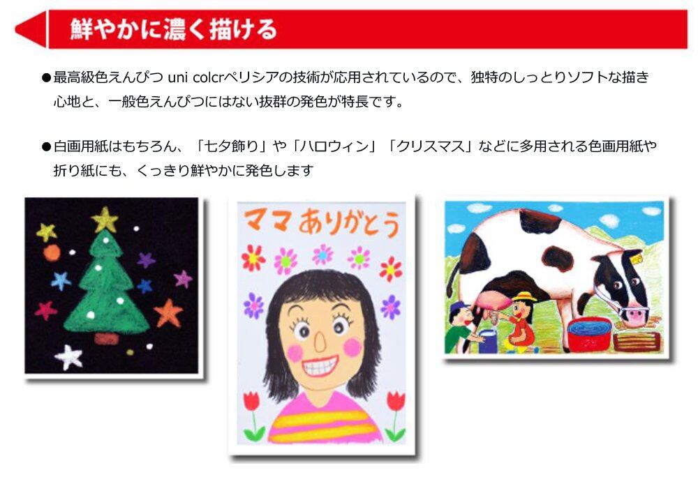 抜群の発色で、色画用紙や折り紙など色の濃い紙にも鮮やかに描くことができます。