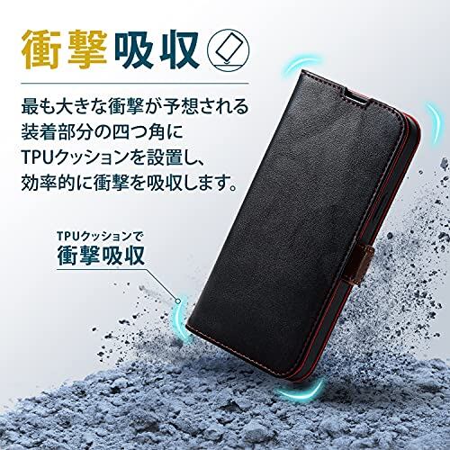 エレコム iPhone 13 Pro Max/レザーケース/手帳型/耐衝撃/磁石付き/ブラック