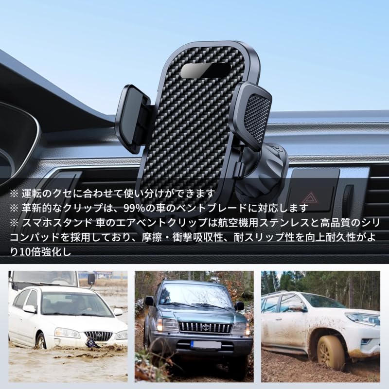 【2023新バージョンアップ】「吸盤式&送風口式両用で超便利」改良された車 スマホホルダーは吹き出し口式だけではなく、ゲル吸盤式ホルダーとしてダッシュボード、フロントガラスに装着してご使用頂けます。「取付簡単でプレゼントに最適」初心者でもすぐ使いこなせるように、車への取り付けがとても簡単です。すまほほるだーはワンタッチで使用できて操作性も抜群です。また、本製品は梱包に加え、細部まで拘ってデザインされ、全体的に高級感が溢れています。安全な運転環境を作り、大変実用性有るので、温かいプレゼントとしては喜ばせていただきます。