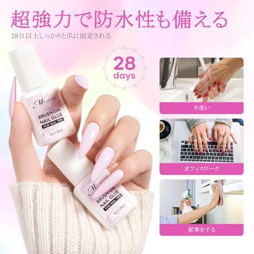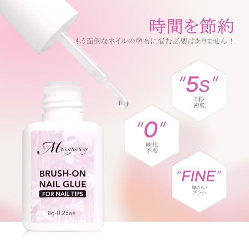 【改良されたフォーミュラ】Missgooeyのネイルチップ接着剤は、強力な粘着力を保つよう改良されています。毒素を含まない成分で作られており、低臭気で身体や肌に優しいです。