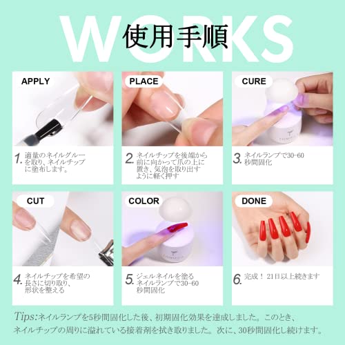 【長持ち】ネイルチップ接着剤として使用する場合、ネイルチップが本爪にしっかりとくっつきます。落ちにくいようにします。適切なステップに従って、最長3-4週間以上持続できます。