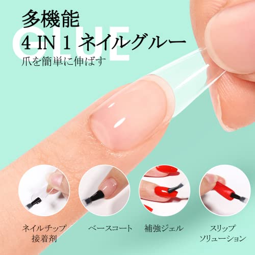 TOMICCA ネイルグルー ネイルチップ接着剤 15ml 4-IN-1 ネイルチップ用グルー&ベースコート&補強ジェル&スリップソリューション ジェルネイル 透け感