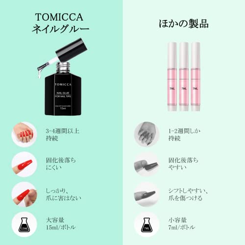 【様々なネイルアート用】TOMICCAの新しいネイルグルーは、ネイルチップ、アクリルネイル、ジェルポリッシュネイル、ポリジェルに使用でき、DIYネイルアートやサロンでの使用に最適です。