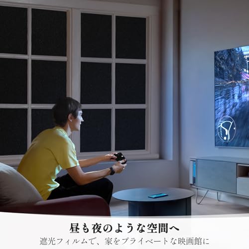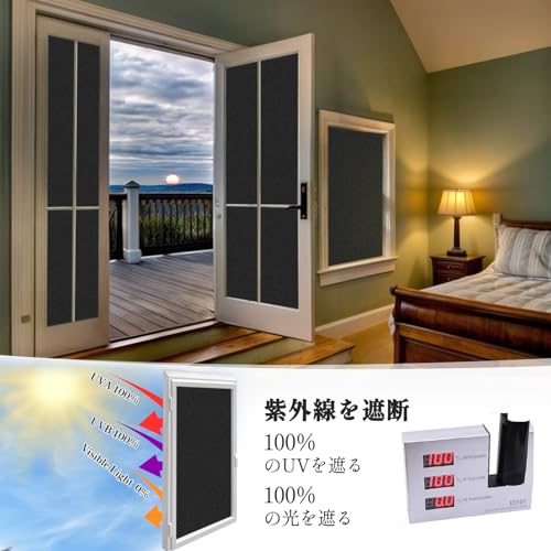 【高遮光、不透明、目隠し効果】⇒ 可視光線透過率0%、不透明、非常に優れた遮光フィルムです。黒色すりガラス調。優れた遮光性をお求めの方、自然光・太陽光で目がまぶしいと感じる方におすすめ。大切なプライバシーをきちんと守ってくれます。