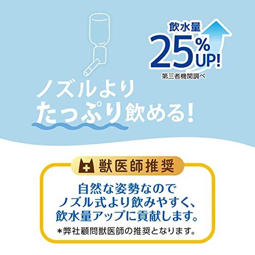 スリムなお皿で顔回りの毛が濡れにくいサークル・ケージ用ドリンクディッシュ ノズルよりたっぷり飲める 飲水量25%UP第三者機関調べ 獣医師推奨・・・自然な姿勢なのでノズル式より飲みやすく、飲水量アップに貢献します。弊社顧問獣医師推奨となります。