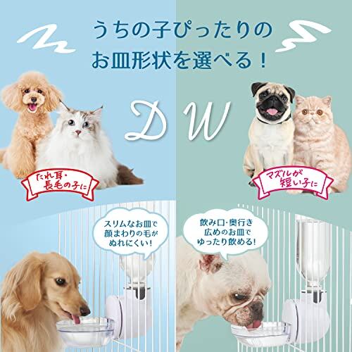 たれ耳・長毛の子に スリムなお皿なので顔回りの毛やたれ耳がお皿に入りにくく、ぬれにくい。片手でボトルとお皿が取り外せるので、水の交換やお手入れラクラクノズルタイプが苦手なワンちゃん・ネコちゃんにも安心なディッシュタイプ。●犬猫用