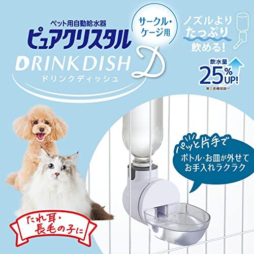 GEX ピュアクリスタル ピュアクリスタル ドリンクディッシュ D サークル・ケージに取り付け 飲みやすい浅皿形状 お手入れ簡単 たれ耳 長毛 犬猫用