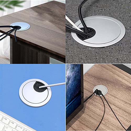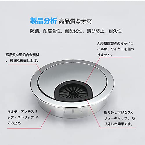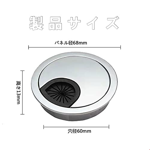 SHULLIN 2個入り デスクグロメット ケーブル穴カバー 60mm穴直径 亜鉛合金 配線孔キャップ丸型 コンピューターケーブルホールカバー ケーブル孔キャップ PCデスク用 コンピューターデスク用 ケーブル アウトレット ホール カバー(シルバー)