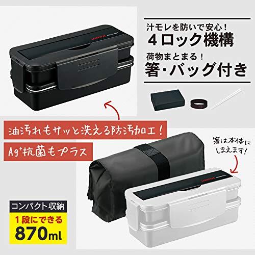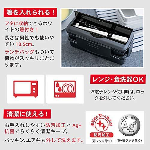 アスベル 弁当箱 ランチボックス 食洗器対応 箸付 2段 Nランタスコレクション TLB-TS870(バッグ付)Ag抗菌 ブラック