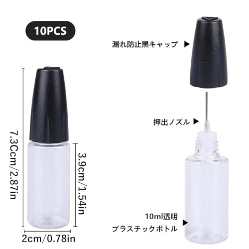 【透明タイプなボトル】透明なボトルなので中身が確認しやすく、残量が一目でわかります。各ボトルはしっかりとフィットする先端キャップを備え、先端を保護し、液体の漏れを防ぎます。ボトル内の液体の揮発を減らし、原材料を節約し、次回の手動使用を容易にするために、使用後はすぐに蓋を閉めてください。