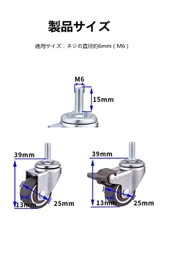 【適用サイズ】ネジの直径約6mm(M6)。消耗したキャスターを自分で簡単に交換ご購入前には必ずキャスターのサイズをご確認ください。