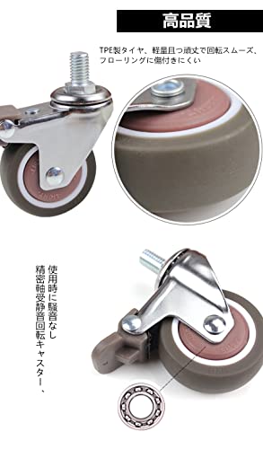 【高品質】TPE製タイヤ、軽量且つ頑丈で回転スムーズ、フローリングに傷付きにくい、移動も便利で周りに騒音をしません。静音キャスターなので、静音性と耐磨耗性に優れ。