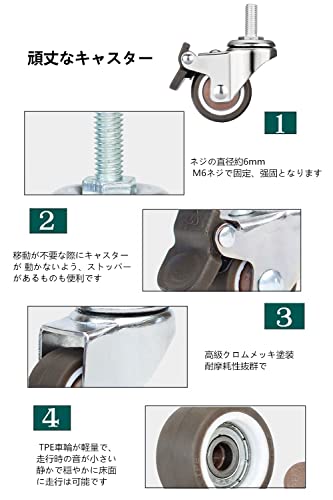 【パッケージ内容】キャスター 4個セット 。ストッパー有りキャスター2個、ストッパー無しキャスター2個。