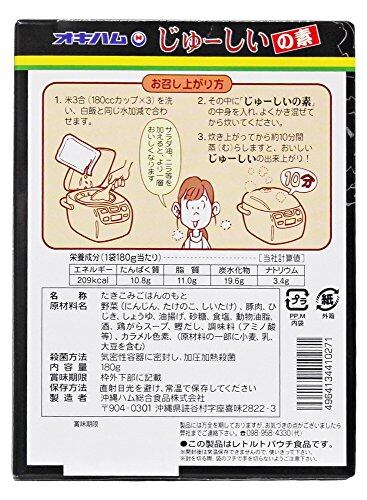 原材料:野菜(にんじん、たけのこ、しいたけ)、豚肉、ひじき、しょうゆ、油揚げ、砂糖、食塩、動物油脂、酒、鶏ガラスープ、鰹だし、調味料(アミノ酸等)、カラメル色素、(原材料の一部に小麦、乳、大豆を含む)