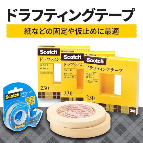3M スコッチ マスキングテープ ドラフティングテープ カッター付 紙箱入り 18mm×30m 230-3-18